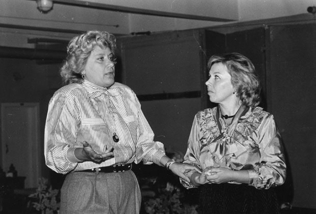 Иногда даже ее скорости не хватало. Помню постановку оперы Бартока «Замок герцога Синяя Борода», что-то ей помешало вовремя освоить партию, так она обклеила кулисы шпаргалками и периодически в них заглядывала. Обыгрывала это сценически — никому в зале в голову не могло прийти, что это она подсказки смотрит. А я стояла в кулисах и восхищалась ее мастерством.