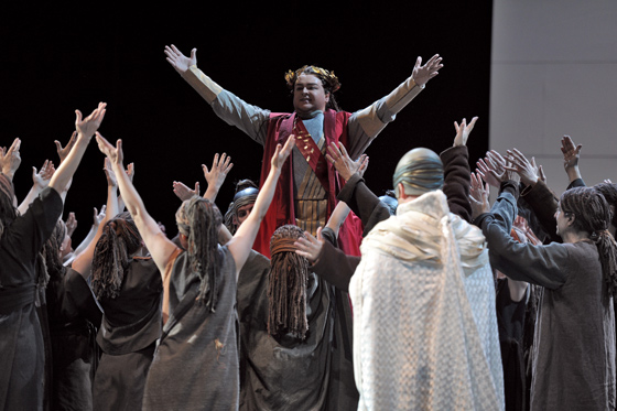 И сильные контрасты — когда, например, хор из ста двадцати человек вдруг сменяет одинокий солист на совершенно пустой сцене, исполняющий романс «D’amour l’ardente flamme» («В священном пламени любви»). Это, пожалуй, самый трогательный музыкальный фрагмент во всей опере.