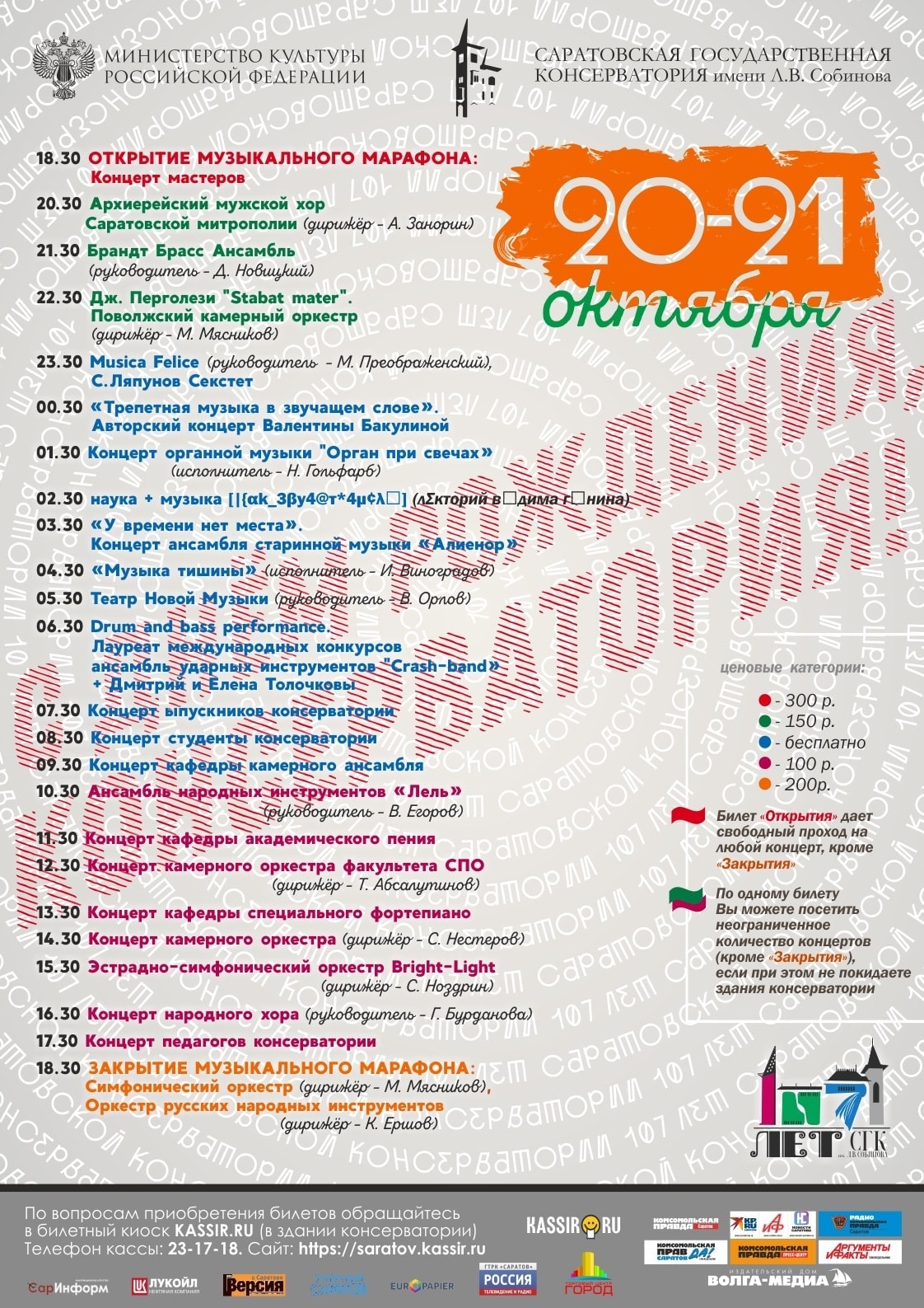 Целые сутки, 20-21 октября 2019, будет звучать живая музыка в Большом зале Саратовской консерватории.