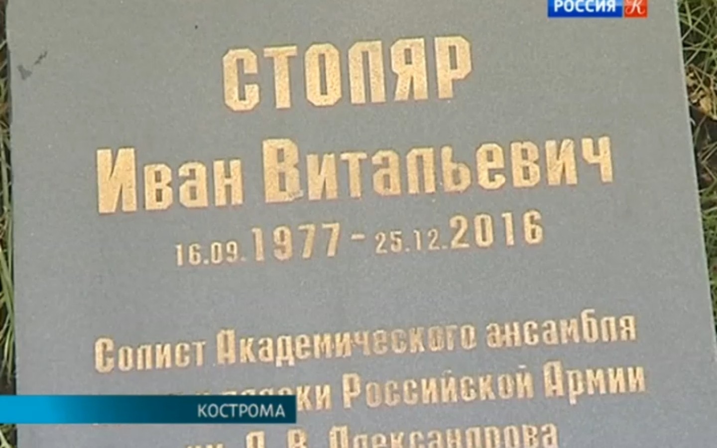 В Костроме открыли мемориальную доску солисту Академического ансамбля песни и пляски имени Александрова Ивану Столяру, погибшему в авиакатастрофе 25 декабря 2016 года.