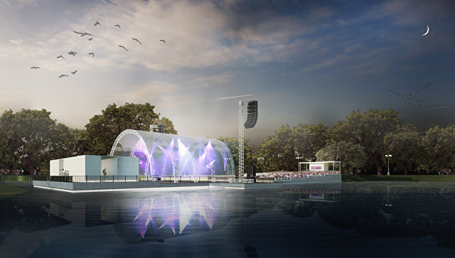 «Сценический комплекс, не имеющий аналогов в столице, будет построен прямо на воде – на Садовом пруду парка «Останкино». Площадка станет главной достопримечательностью одного из крупнейших и наиболее благоустроенных парков Москвы»,