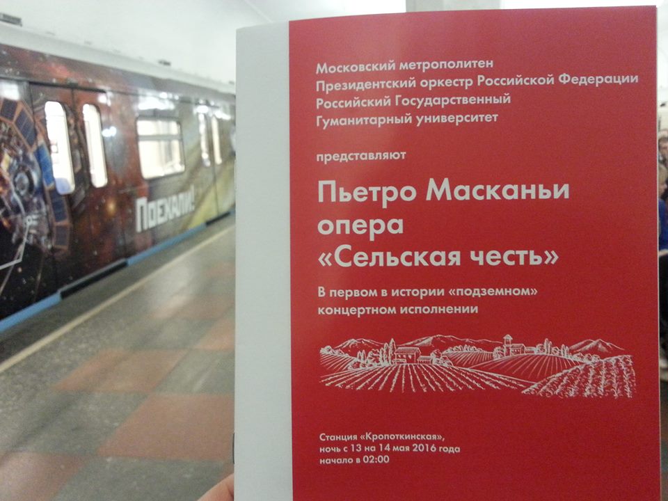 В ночь на субботу в Московском метрополитене состоялся оперный концерт. Культурное мероприятие состоялось на станции метро «Кропоткинская». Концерт был дан в честь дня рождения столичной подземки.