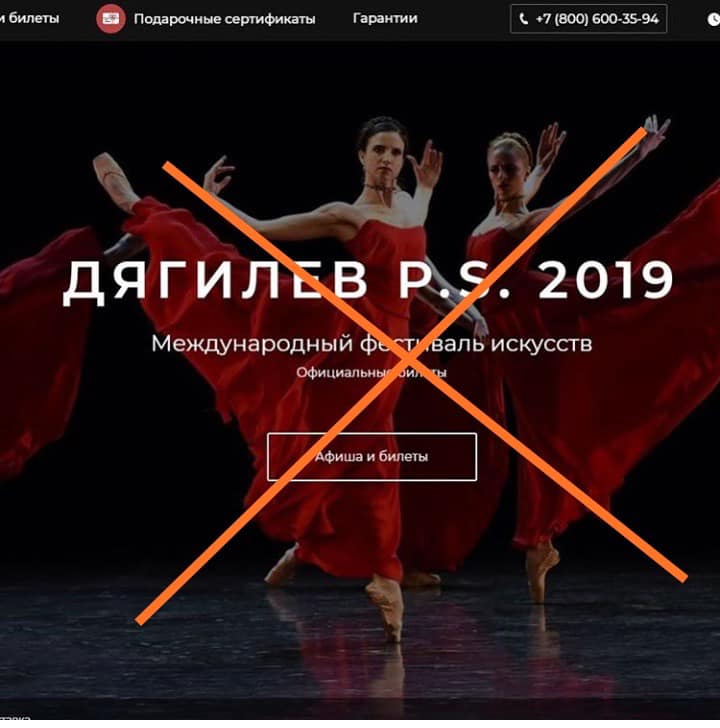 Обратите внимание, очень мелким шрифтом внизу они пишут, что они: Консьерж-сервис по оказанию услуг по подбору, бронированию и доставке билетов. Не является официальным cайтом фестиваля «Дягилев P.S.»Наш сайт это только https://www.diaghilev-ps.ru. Настоящие билеты только там и в кассах театров.