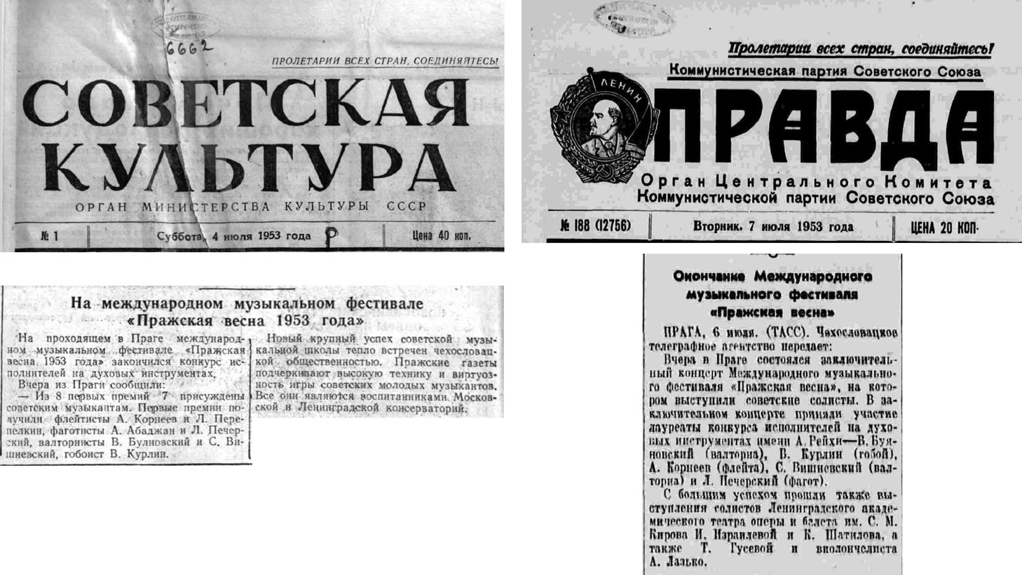Среди экспонатов Российского национального Музея Музыки есть фотография, сделанная в Москве 10 июня 1953 года. На ней на фоне Большого Театра сфотографирована группа советских музыкантов, которые только что с триумфом вернулись из Чехии с Фестиваля «Пражская весна» и Международного конкурса исполнителей на духовых инструментах имени А. Рейхи.