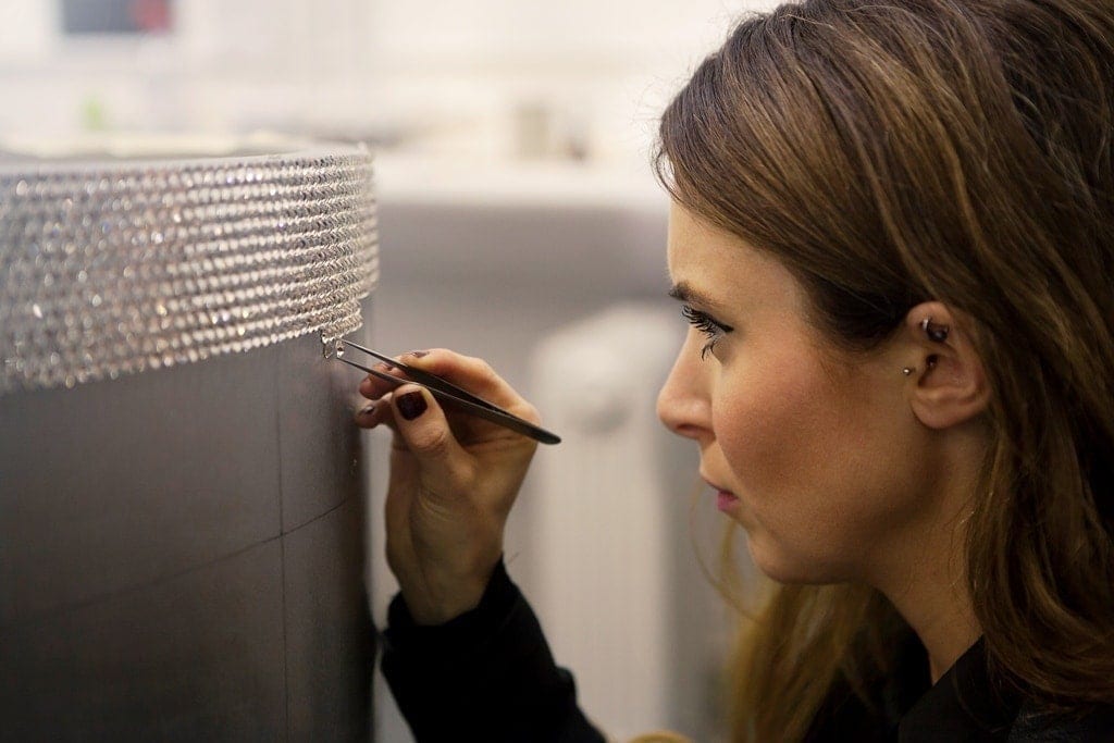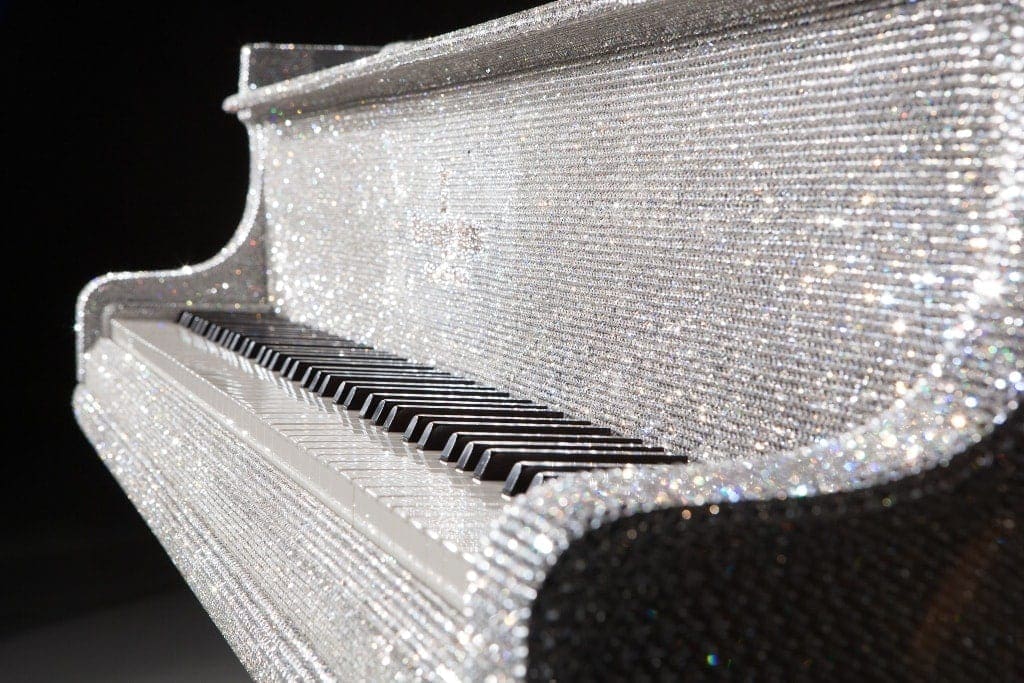 В течение шести месяцев каждый камень Сваровски кропотливо наносился вручную на корпус рояля.