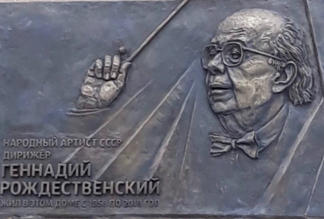 Мемориальная доска открыта на доме на Каретном ряду, где жил дирижер Геннадий Рождественский.