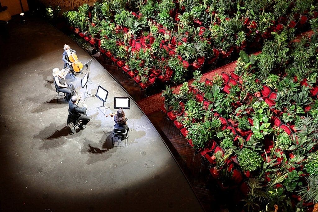 Свой первый концерт музыканты решили сыграть для необычных зрителей — вместо людей места в зрительном зале заняли 2292 комнатных растения, привезенных из различных питомников.