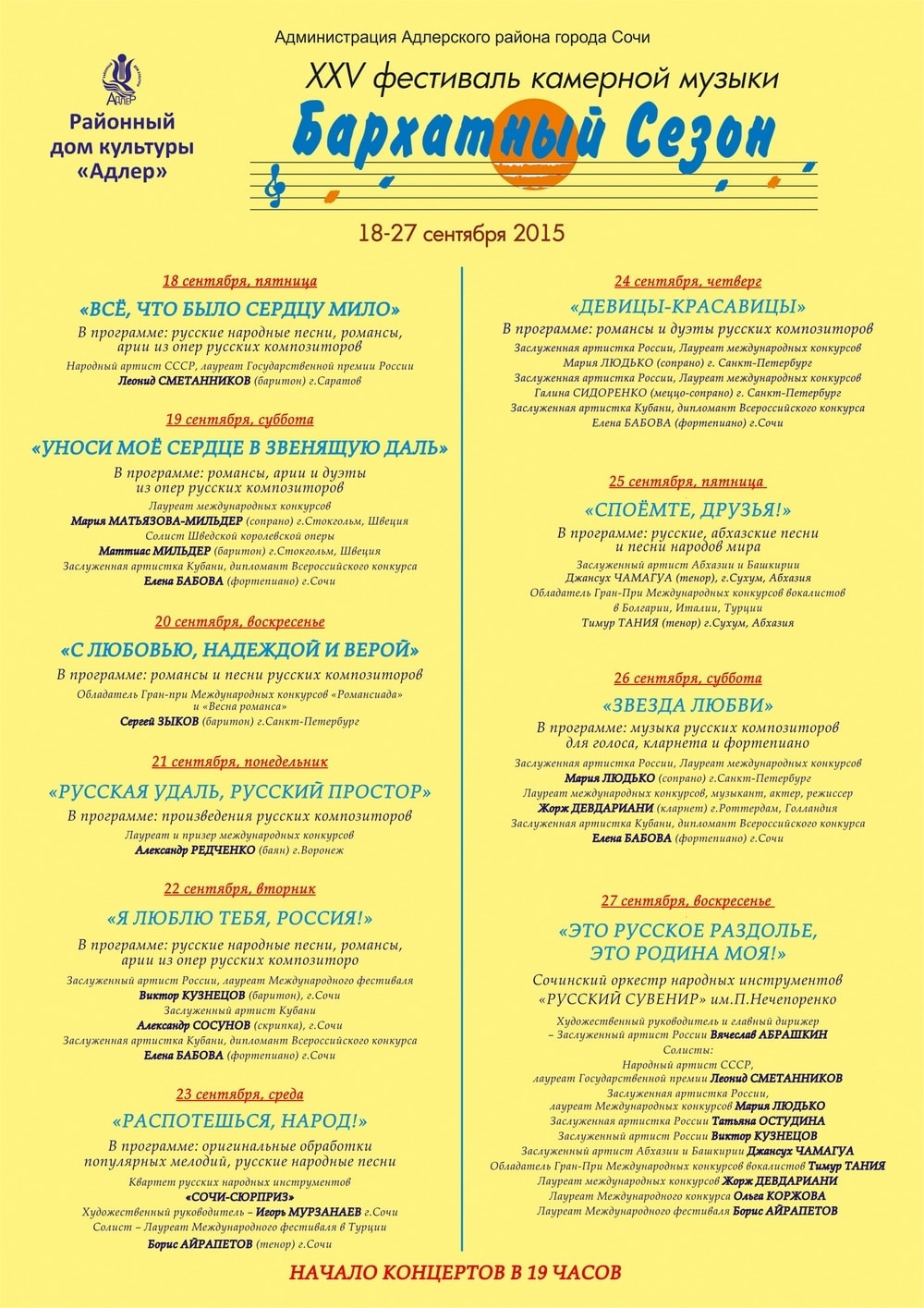XXV Открытый фестиваль камерной музыки начнется сегодня, 18 сентября, в РДК «Адлер».