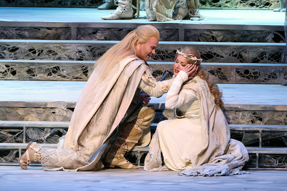 Именно так – монументально, эпично – выглядели рыцари: король Генрих Птицелов (Михаил Петренко), граф Фридрих фон Тельрамунд (Евгений Никитин) и сам Лоэнгрин – небесный посланец, спустившийся на землю, дабы защитить Эльзу и народ Брабанта.