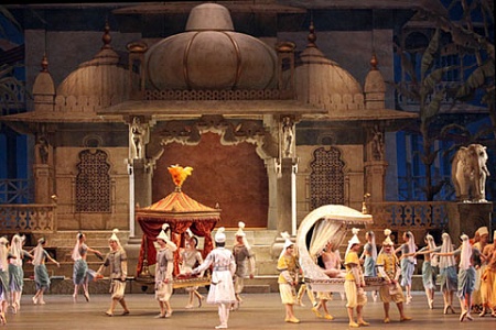«Баядерка», поставленная Петипа в 1877-м, идет в Большом с 1991 года в редакции Юрия Григоровича. Он сохранил в ткани спектакля и хореографические шедевры создателя, и более поздние культурные слои – танцы выдающихся хореографов XX века.