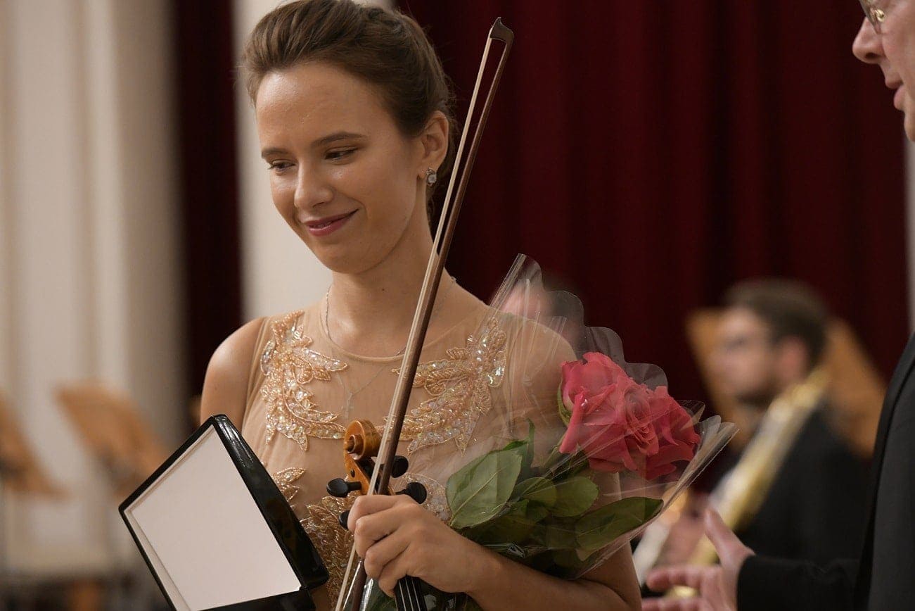 Скрипачка очень хорошо держалась, не теряя завидного самообладания в самых рискованных местах концерта. Лучшей из трех частей в ее исполнении показался финал, который Елизавета повторила и на гала-концерте, но от волнения или от переконцентрации однажды не уследила за текстом, который на пару тактов исчез, и ей пришлось «на скаку» догонять оркестр.