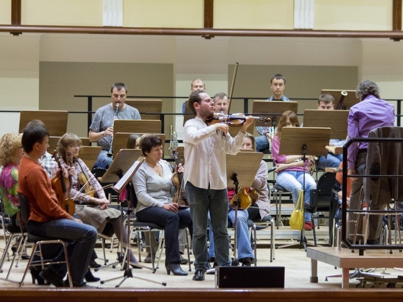 Накануне открытия нового сезона Омской филармонии на сцене Концертного зала состоялась репетиция приглашенной звезды — бельгийского скрипача Леонарда Шрайбера.