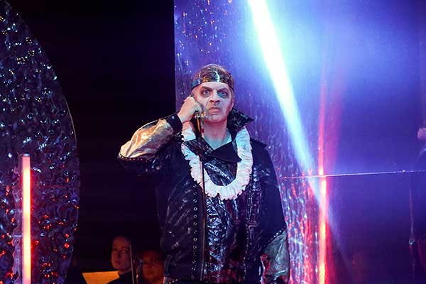 Постановка в камерном Зале Шаховской предельно скупа – почти отсутствуют декорации, тем ярче на этом фоне выглядит зловещий чертог Императора, подсвеченный то кроваво-красным, то мертвенно-синим светом. И тем разительней превращение самого Императора из владыки мира в тварь дрожащую, которую забирает Смерть (режиссер Вадим Летунов, художник Ростислав Протасов).