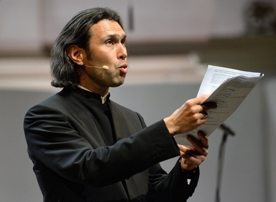 Разбирая симфонию по тактам и по отдельным нотам, приводя музыкальные примеры с помощью своего образцового коллектива (все это время послушно сидевшего на сцене), представляя диковинные инструменты огромного позднеромантического оркестра, читая стихи и письма, монтируя музыкальные кусочки из Малера то с Мусоргским, то с Моцартом.