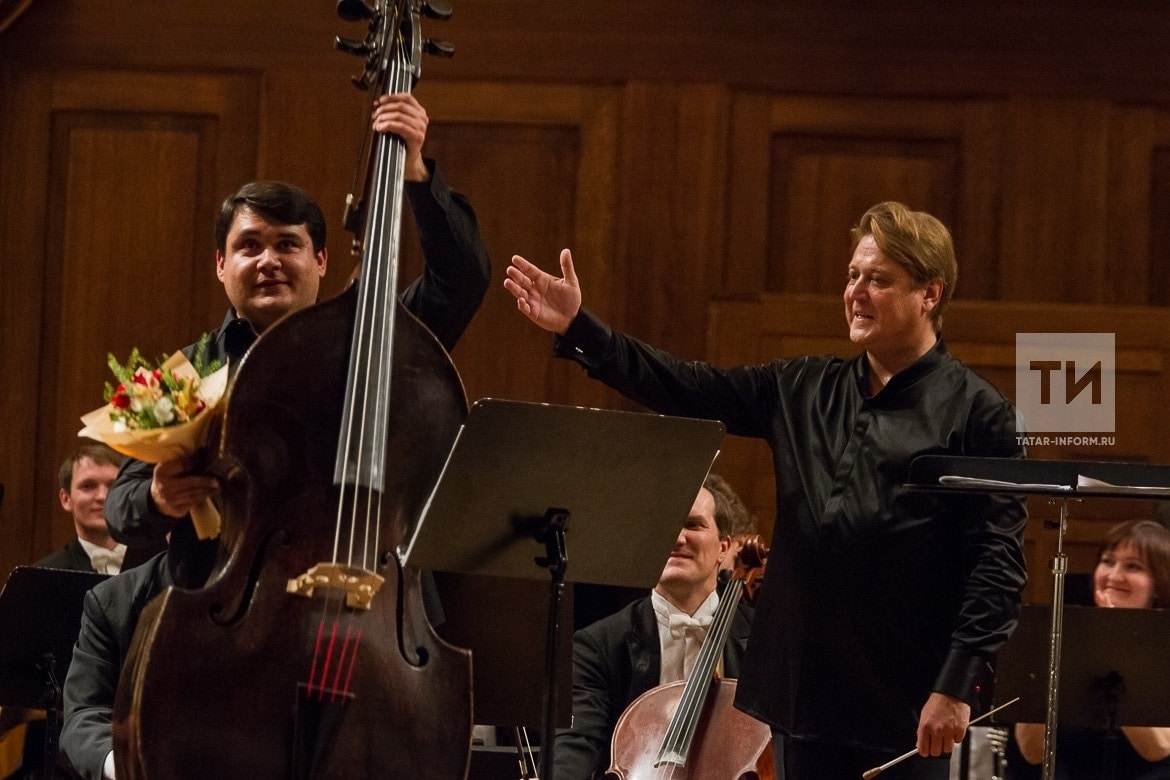 Программу открыл казанский контрабасист Марат Волков на инструменте австрийского мастера Матиаса Тира 1765 года. Солист в сопровождении Государственного симфонического оркестра Республики Татарстан исполнил одно из самых драматических, напряженных и тревожных произведений Александра Чайковского – 62-й опус концерта для контрабаса с оркестром в трех частях, написанный в середине 90-х годов по просьбе концертмейстера Санкт-Петербургской филармонии Александра Шило.