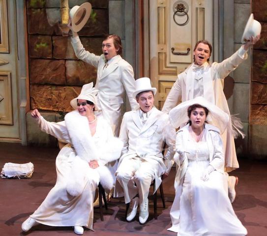 Но вместо ангелов и колокольчиков главными героями оказываются истеричные и склочные примадонны и премьеры: Сопрано (очаровательная Анна Аглатова), Меццо-сопрано (темпераментная Светлана Шилова), Тенор (лиричный Богдан Волков), Баритон (романтичный Константин Шушаков) и Бас (Петр Мигунов, на месте которого, правда, хотелось бы услышать более внушительный и яркий голос).