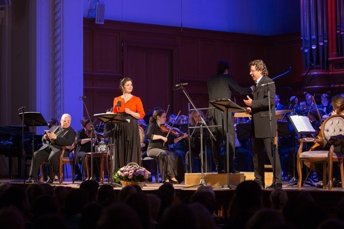 Удивительно было взаимодействие Ольги Пудовой – Мари с оркестром, а это был Московский академический камерный оркестр «Musica Viva» под управлением маэстро Дениса Власенко. Было впечатление, что певица устремлена и летит к каким-то одной ей известным и ощущаемым ею высотам, увлекая за собой в этот прекрасный полёт всех остальных артистов. Она была лидером в этом фантастическом полёте. Ей был известен этот путь. Обычно строгий и властный, маэстро Власенко явно увлечённо следовал за певицей.