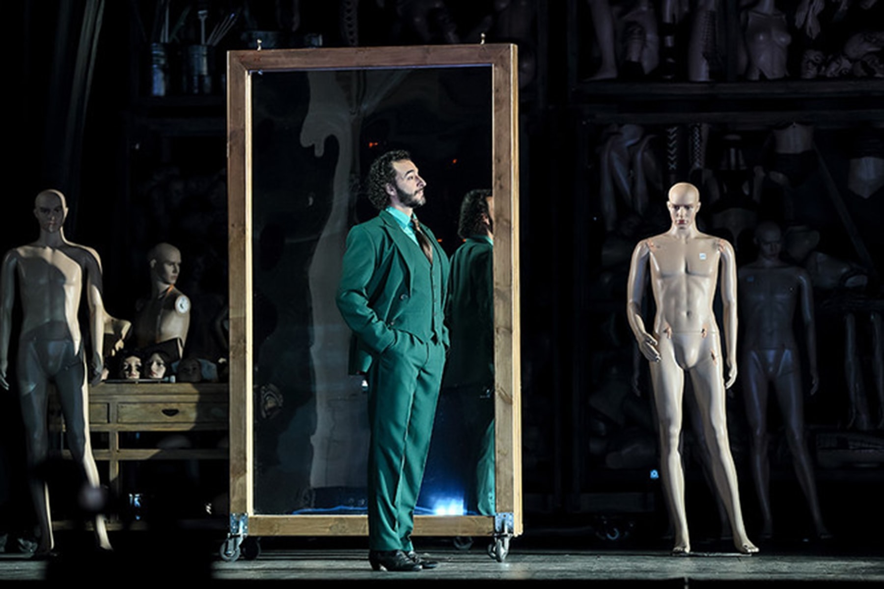 Толпы людей и манекенов на сцене прекрасно работают в сценах путаниц, переодеваний, неожиданных появлений и ловких исчезновений. А очертания сценографической фабрики кукол дают возможность героям быть сценически нежными, не одинокими в ариях и ансамблях.