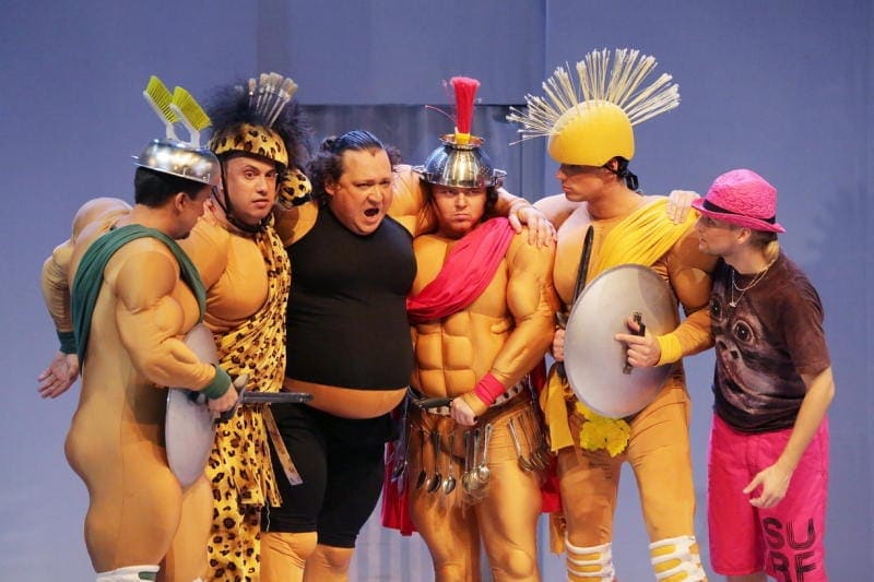 Но будто боясь спугнуть удачу, в театре решили проститься со «съёмными метрами» на Новом Арбате тихо, без пафоса и фанфар. В закрытие юбилейного сезона сыграли недавнюю премьеру – оперетту Жака Оффенбаха, а точнее оперу-буфф, как называл ее сам композитор, «Прекрасная Елена» (в заглавной партии – тезка героини – эротичная обладательница красивого сопрано Елена Семенова; за дирижерским пультом – музыкальный руководитель труппы невероятно темпераментный Владимир Понькин).