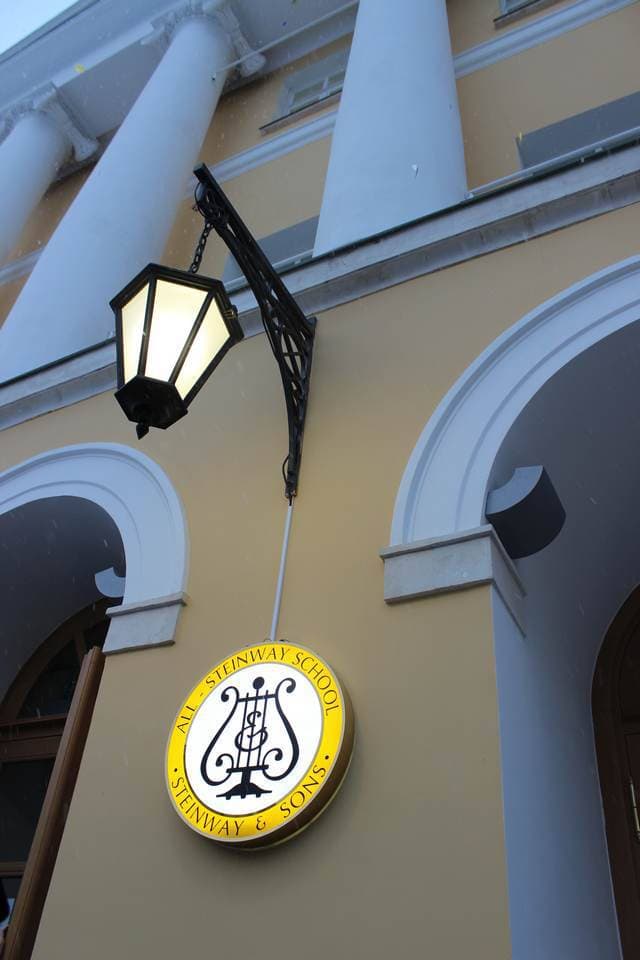 Финальным аккордом мероприятия стало открытие фирменного знака All-Steinway-School на входе в здание школы. Под взрывы хлопушек и выстрелы фейерверков покрывало было снято, и Дом на Знаменке стал гордым владельцем почетной эмблемы, символизирующей принадлежность к элитному международному клубу.