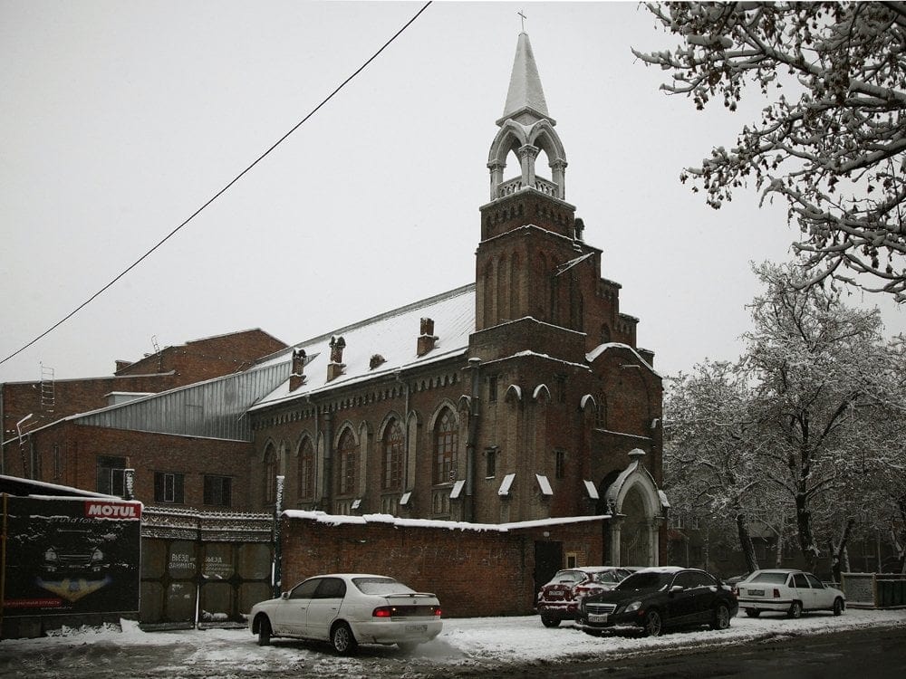 Владикавказская филармония располагается в здании кирхи (немецкой лютеранской церкви), которое было построено около 150 лет назад, пережило революцию 1917 года, Гражданскую и Великую Отечественную войны. В разное время здесь находились то штаб реввоенсовета, то госпиталь, то Дом пионеров.