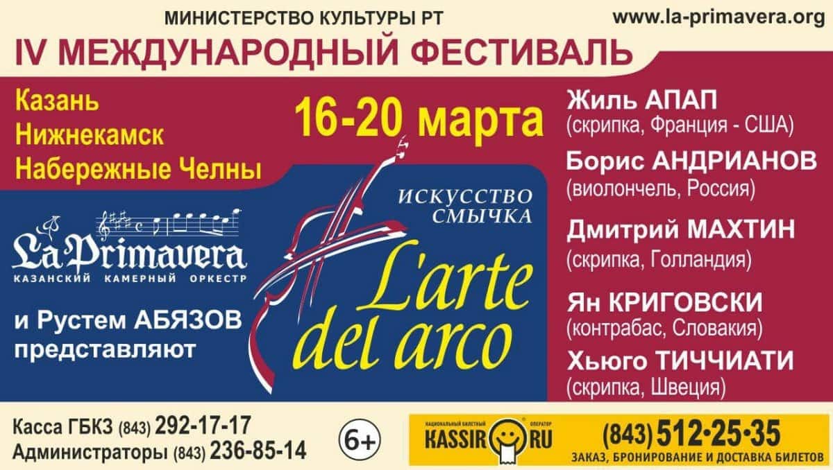 На L`arte del arco информационно-полезное благо сочетается, так сказать, с педагогически-беспроигрышным делом. Проводятся мастер-классы, по преимуществу для учеников ДМШ, но и это — «свет в окне» и лучшая из мотиваций к занятиям музыкой. За такое — только спасибо! Ну а познавательно-экскурсионные поездки по Татарстану да еще с публичными концертами — роскошь, ради которой, полагаю, некоторые европейского уровня музыканты и принимают приглашение казанского фестиваля.