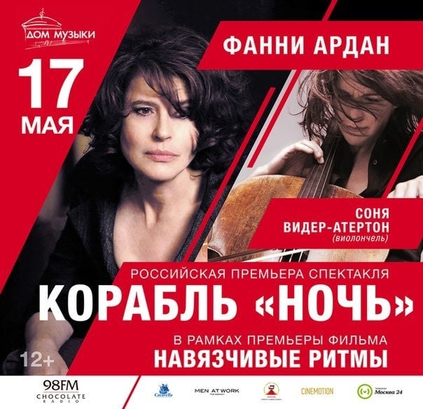Сначала звезда французского кино и театра презентовала свою новую режиссерскую работу – фильм «Навязчивые ритмы». Затем – моноспектакль «Корабль “Ночь”» – по пьесе французской писательницы, актрисы, режиссера, сценариста Маргерит Дюрас.