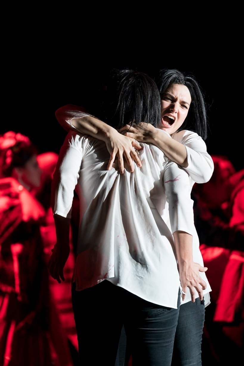 К сожалению Лоте де Бер слишком концентрируется во второй части спектакле на акте дефлорации Жанны. Сцену заполняют окровавленные полотнища, их так много, что всех начинает подташнивать. Казалось бы феминистки должны всячески торжествовать, когда девочка становится женщиной. А здесь весь финал построен на том, как Жанна-женщина становится нечистой и люди начинают ее ненавидеть именно из-за этого.