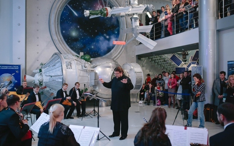 Такой концерт вполне мог бы сойти за игру воображения, если бы и вправду не случился: Государственный академический русский народный ансамбль «Россия» имени Л. Г. Зыкиной исполнил в Музее космонавтики сочинения финалистов композиторской лаборатории «Открытый космос».