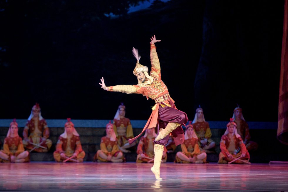 «Раймонда» Лиепы стала еще короче, чем у Григоровича — в отличие от четырехчасового оригинала Петипа она пробегает за два часа. При этом постановщик попытался сохранить мужское столкновение, придумав Абдерахману эффектную новую вариацию (это позволяет блеснуть молодому прыгучему Элгару Егиазаряну, который явно скоро станет звездой труппы) и сохранив традиционную для московских версий хореографию Леонида Лавровского и Юрия Григоровича для Жана де Бриена (в этой партии — Даниил Росланов, растерявший легкость духа и танца). Но ни на одну из семи вариаций, составляющих портрет Раймонды, рука Лиепы не поднялась.