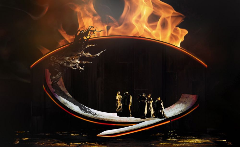 В центре сценографического решения (художник Мария Высотская) – полукруглая, ржавого цвета конструкция, словно символ чего-то неуловимого, изменчивого, непостоянного. Но одновременно – того, что дарит ощущение полета. На этих огромных качелях Смерть в инфернальном танго настигает немецкого генерала.