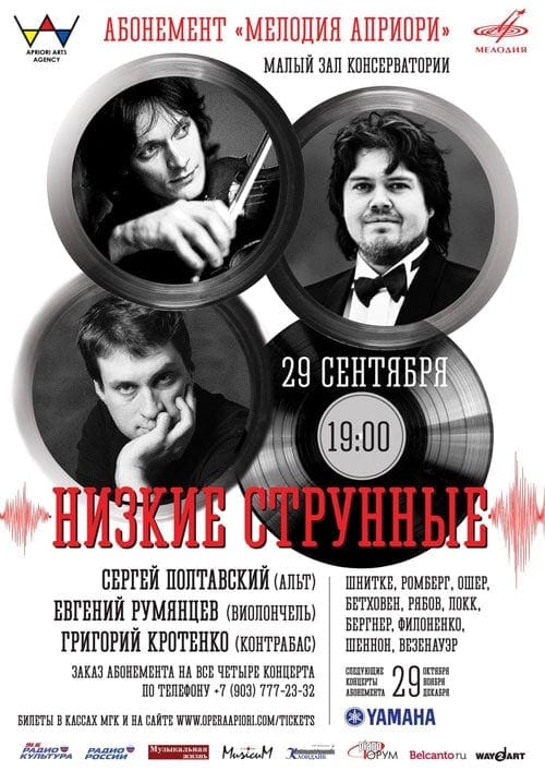 Впрочем, исполнители в этот вечер – а это были любимцы московской (и не только) публики, известные музыканты альтист Сергей Полтавский, виолончелист Евгений Румянцев и контрабасист Григорий Кротенко – показали публике такое действо, что впору было забыть не только о холоде, но и обо всем на свете.