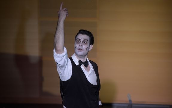 Его Поприщин (в великолепном исполнении молодого вокалиста Дмитрия Гарбовского) — «маленький человек» не только в привычном, литературном смысле. Он маленький — как мал ребенок перед жестоким «взрослым» миром. Один шестилетний мальчик на вопрос, кем он хочет стать, когда вырастет, отвечал: «Военным клоуном». Ребенку очень нравилась красота офицерской формы и радостная атмосфера цирка — он и захотел совместить. Вот и этот спектакль поставлен про такого «военного клоуна».