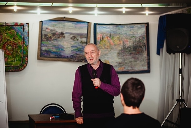 Организаторы проекта с вниманием подошли к созданию комфортных условий, как для выступающего, так и для зрителей. В распоряжении лектора были микрофон, доска с маркерами для записей и пианино. Михаил Герцман оказался человеком неприхотливым и вести повествование решил без лишних приспособлений.