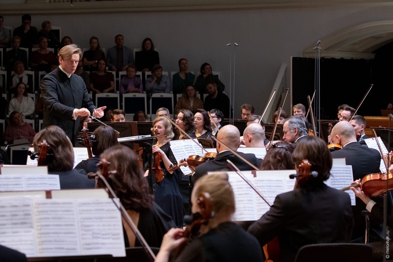 Тимофееву хорошо помогали Академический симфонический оркестр Московской филармонии и дирижер Антон Шабуров. Кстати, как напомнил оратор, именно этот оркестр дали Стравинскому для дирижирования своей музыкой во время знаменитого визита в СССР.