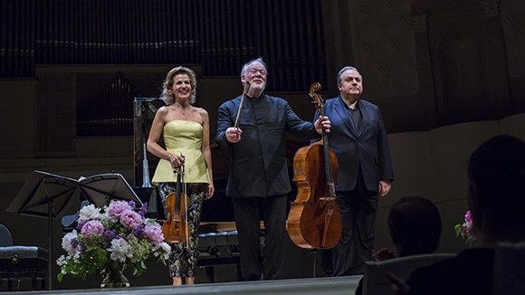 В рамках фестиваля «Черешневый лес» в Москве выступило выдающееся артистическое трио — скрипачка Анне-Софи Муттер, пианист Ефим Бронфман и виолончелист Линн Харрелл.