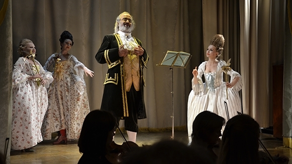 Действие вечера развернулось в двух соседних интерьерах. Оперу Чимарозы исполнили в Домашнем театре. Миниатюрный партер на 60 мест не вместил всех желающих. Единственную партию — капельмейстера, который во время репетиции журит «нерадивый» оркестр, спел итальянский баритон Марчелло Липпи.