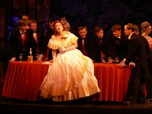 Премьеру оперы «Травиата» Верди артисты пели на языке оригинала – итальянском. Дабы зрители понимали, о чем речь, над сценой на новом табло с бегущей строкой транслировался перевод. А еще по задумке режиссера-постановщика Бориса Лагоды, столы, стулья и другие предметы мебели… перемещались по сцене. Особо зал тронула сцена, когда главная героиня Виолетта (Ольга Сосновская) в душевном порыве двигала за собой стойку-манекен с платьями.