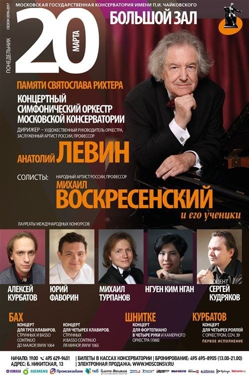 Это программа построена на контрасте – светлый и оптимистичный концерт для трех клавиров Баха соседствует с мрачным сочинением Шнитке, а в финале вечера – премьера. Как дань памяти Рихтеру.