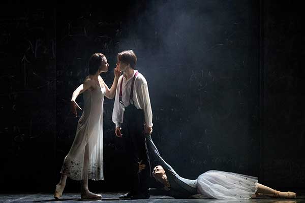 Рисунок танца, особенно главных героев (я видел состав с Германном – Максимом Просянниковым и Лизой – Маюкой Сато), по большей части классичен, в частности в дуэтах с эффектным набором поддержек;жесты Распорядителя, он же Сен-Жермен, он же переигравший Германна Чекалинский (Андрей Орлов), говорят о натуре провокатора, а исполнительнице роли Графини приме Большого театра Марии Александровой чудесным образом удается быть убедительной и в ипостаси юной светской львицы, и в облике «осмидесятилетней карги», которая, впрочем, танцует по-прежнему совершенно, только с микроскопической заостренностью движений – мастерски смоделированным знаком возраста.