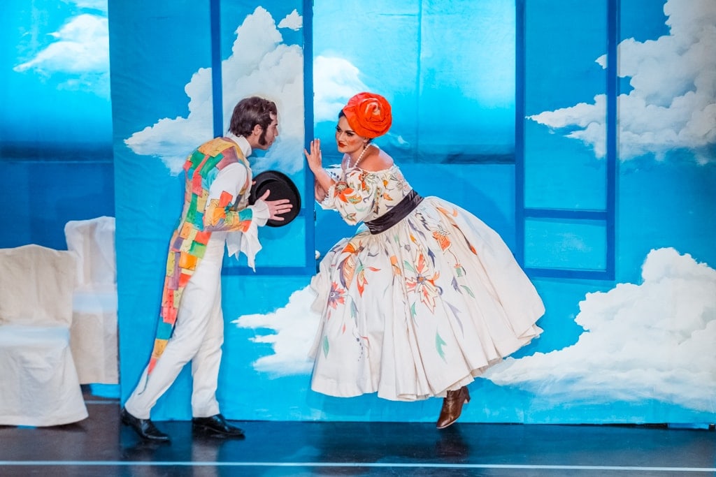 Все артисты увлечены игрой и видно, что они получают большое удовольствие от оригинальности своего сценического существования. Каждый персонаж поет ровно столько, сколько надо, чтобы проявить свою «породу», свой характер и свои чувства во всей ясности. Это — маски, а не индивидуальные личности. Их четверо: сопрано, меццо-сопрано, контральто и тенор. Каждый голос — типичное и характерное проявление особых ему присущих качеств.