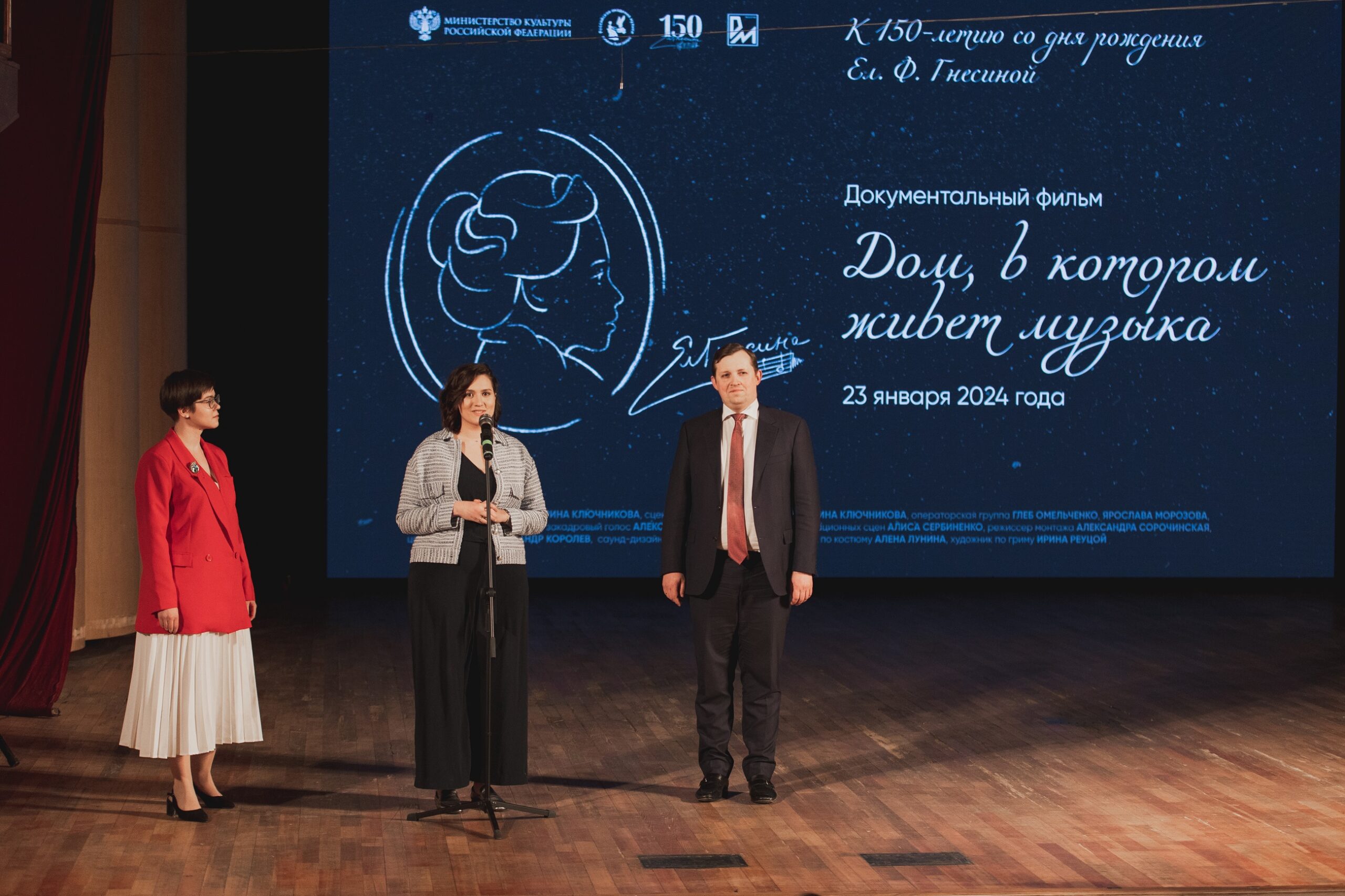 Показ картины «Дом, в котором живет музыка» собрал в Концертном зале Академии преподавателей, студентов и выпускников Гнесинки, а также коллег из других музыкальных образовательных учреждений и друзей учебного заведения и стал первым событием в 2024 году, приуроченным к празднованию 150-летия со дня рождения Елены Гнесиной.