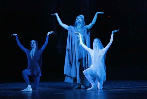 К счастью — потому что те спектакли, что Юрий Григорович при недавних возобновлениях редактировал («Щелкунчик», «Спящая красавица», «Баядерка»), менялись к худшему — в них возникали неожиданные прорехи и не менее неожиданные заплатки. В нынешней редакции — практически все, как было: начиная с пяти ударов литавр, в которых зашифровано посвящение пяти людям, причастным к созданному в 1961 году балету (Хикмет, Меликов, Григорович, дирижер Ниязи и художник Симон Вирсаладзе), через все марши дворцовой челяди, все взвинченные любовные монологи, танцы воды и огня — к патетическому финалу.