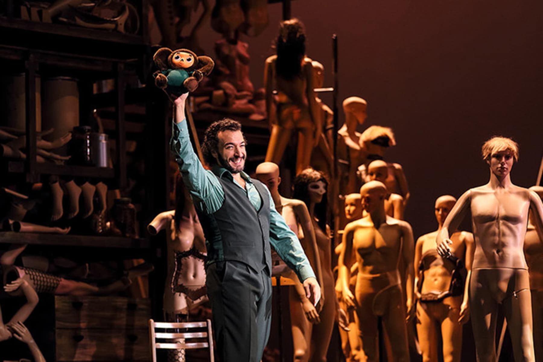 В спектакле Карраско можно найти массу отсылок к знаменитым текстам ХХ века — от «Парфюмера» (толпа, разрывающая и съедающая героя, заворожившего целый город) до «Приглашения на казнь» (обреченность чужака), от фильмов сюрреалистов до сериала «Доктор Кто».