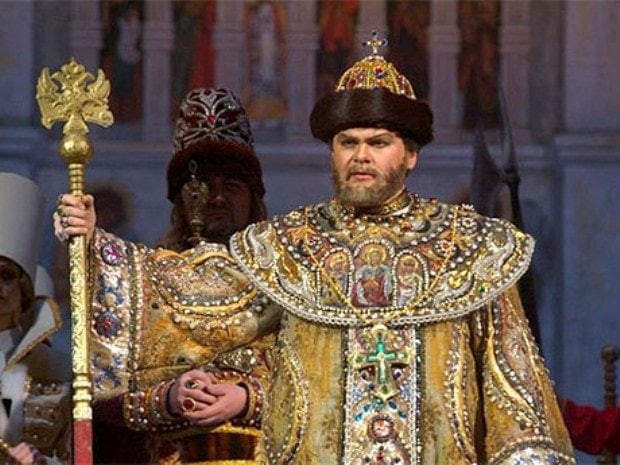Впрочем, с оркестром тут ситуация системно неблагополучная. И приезжему маэстро Валитову респект за одно то, что в традиционно перевернутой картине музыкантской ответственности, исходящей в ТГАТОИБ не от дирижера (или музыкального руководителя постановки), а от поющих на сцене солистов, он не рассыпал спектакль-антик на мелкие черепки. Даже сподобился идеально совпасть с Борисом, когда тот, повернувшись тылом к залу, медленно шествовал вглубь сцены со словами: «В годину бед и тяжких испытаний вы мне помощником, бояре». Потрясающий аттракцион дирижерско-певческого канатоходчества!