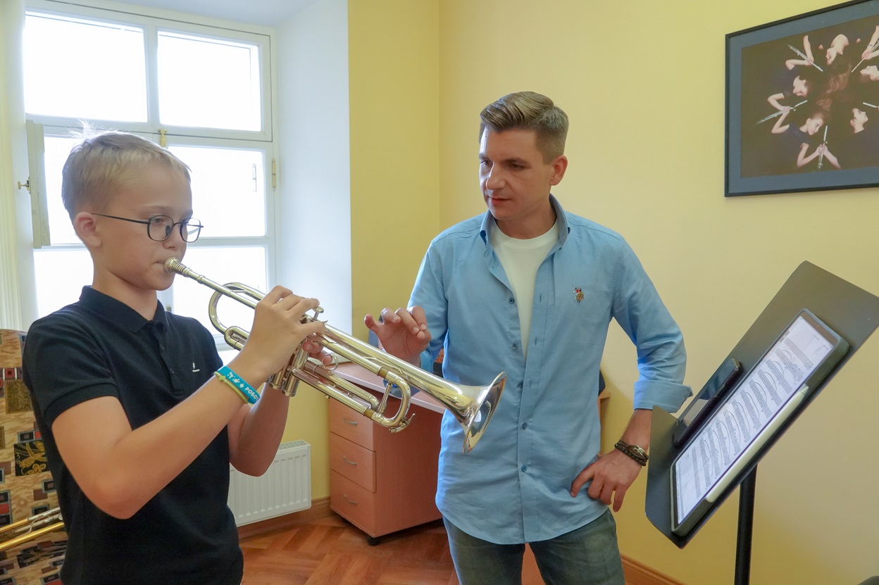 «Летняя школа» притягивает к себе не только музыкантов, но и людей совершенно других специальностей. К солисту Национального филармонического оркестра России п\у Владимира Спивакова, педагогу «Летней школы» по классу трубы Кириллу Солдатову в этом году обратились с необычной просьбой – помочь разучить пьесы для трубы для театрального этюда.