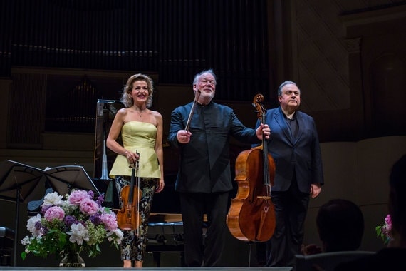 Они не только сыгрались до миллиметра смычка, они еще и прекрасно дополняют друга: экстравертная Муттер гармонирует с застенчивым Бронфманом и не чуждым шоуменству Харреллом в силу профессиональной сдержанности, опосредованности эмоций – любая из них, от ликования до скорби, выражена полноценно, но не бьет через край.