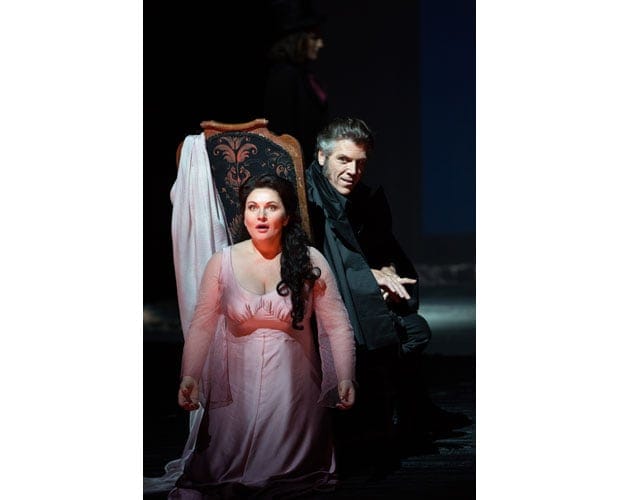 Похоже, главным направлением удара для постановщиков была музыкальная часть — что для оперного театра, пожалуй, все же лучше, чем наоборот. Все очень качественно: и инфернальный баритон Томаса Хэмпсона (Линдорф-Коппелиус-Миракль-Дапертутто), и чуть слишком «итальянистый», но главное — красивый и невероятно подвижный тенор Витторио Григоло (Гофман), и виртуозное колоратурное сопрано Эрин Морли (Олимпия), легко взлетающее до третьей октавы — простим пикантной американке, что самый последний ля-бемоль своей головоломной песенки она, едва взяв, оборвала (как говорят штангисты, вес поднят, но не удержан).