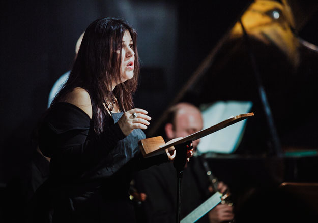 Вокальную партию — если можно назвать таковой сплошные всхлипы, пришепетывания и придыхания, сквозь которые порою прорывались обрывки немецких фраз, — исполнила Наталия Пшеничникова. Чаще всего в концертных программках ее амплуа обозначается как «экстремальный вокал».