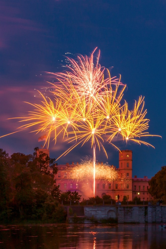 Грандиозным красочным фейерверком в акватории Белого озера завершился праздник музыки в Гатчине. Утреннее июльское небо было озарено залпами салюта под несмолкающие крики довольной аудитории.